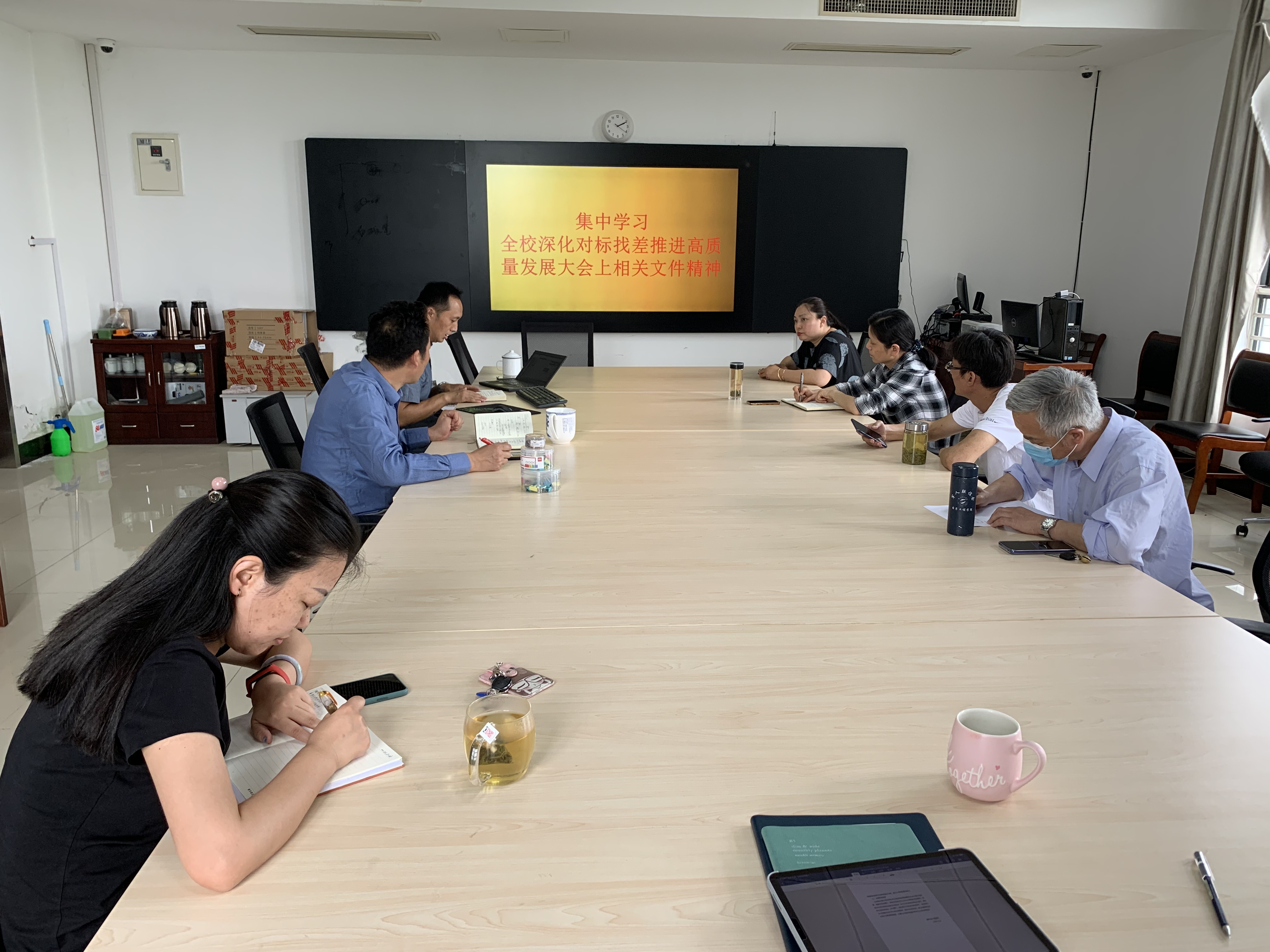5月26日下午,国资处根据学校统一安排,在行政楼310会议室,集中学习全校深化对标找差推进高质量发展大会会议精神。大家认真研讨《关于印发全校深化对标找差推进高质量发展大会上相关文件的通知》(南晓院委〔2020〕35号)要求,逐条对照分析国资处业务工作,用心用力抓落实。集中学习由支部书记崔焕钰主持。